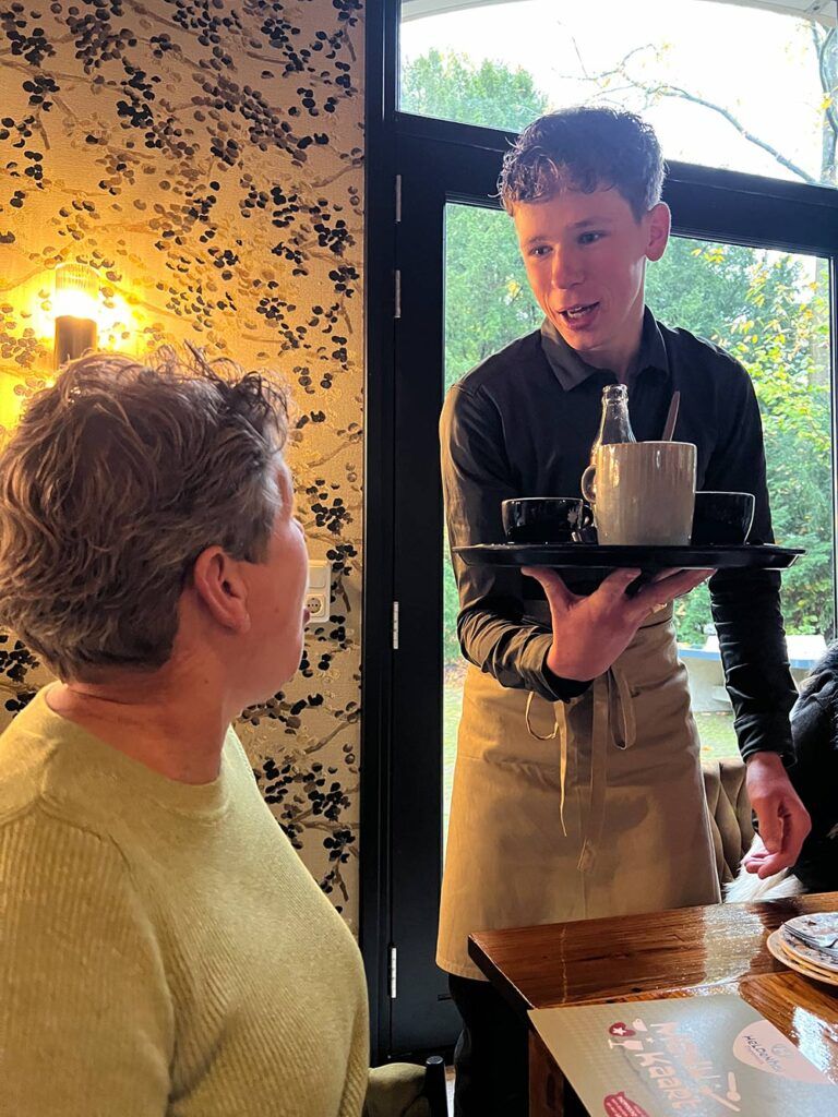 Meer dan een theehuis – Het Theehuis wordt gerund door onze Helden: jongeren met een licht verstandelijke beperking die hier hun dagbesteding vinden én hun talenten ontwikkelen. Zij verwelkomen bezoekers, bakken lekkers, verzorgen de tuin en leren stap voor stap wat het betekent om samen te werken en verantwoordelijkheid te dragen.